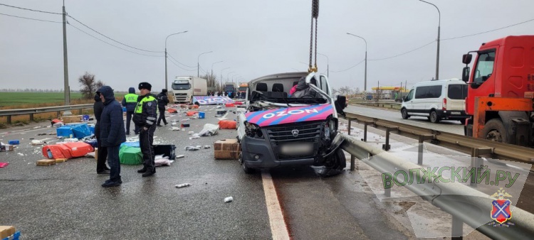 Как сообщили Волжский.ру в пресс-службе ГУ МВД по региону, на 947 км в Городищенском районе столкнулись «Газель» брендированная логотипом Ozon и фура «Volvo». В результате аварии фургон сильно пострадал, кузов был разрушен, а товары рассыпались по всей трассе. Водитель доставки Озон попал в больницу с различными травмами.