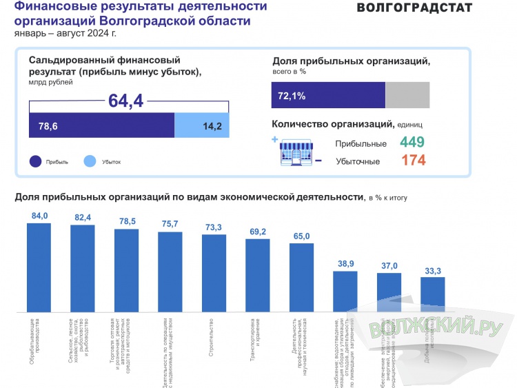 В Волгоградской области представили финансовые результаты деятельности организаций с января по август.