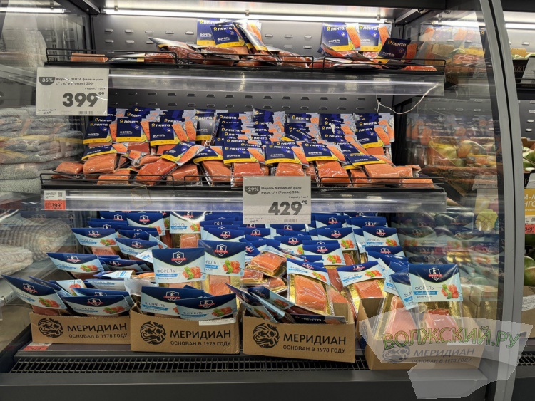 2. В «Магните» ассортимент слабосолёной рыбы был довольно скудным, а полки полупустые. За кусочек в 200 граммов сёмги здесь придётся отдать 659,99 рубля по акции, а форели – 539,99 рубля.
