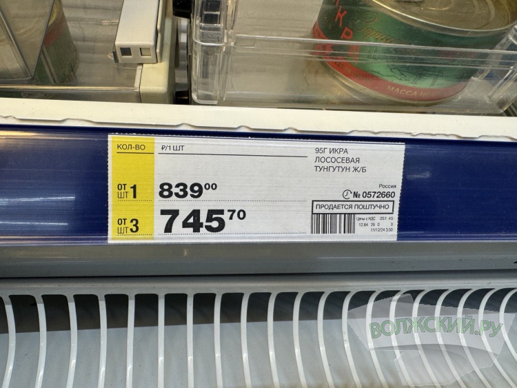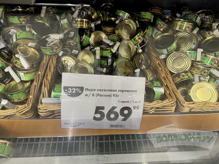 Стоимость 95-граммовой баночки икры лососёвой составила 569,99 рубля по карте. Без неё цена достигала 842,19 рубля. 200 граммов икры горбуши можно купить за 2021 рубля, а 125 граммов чёрной икры – почти за 8 тысяч рублей.
