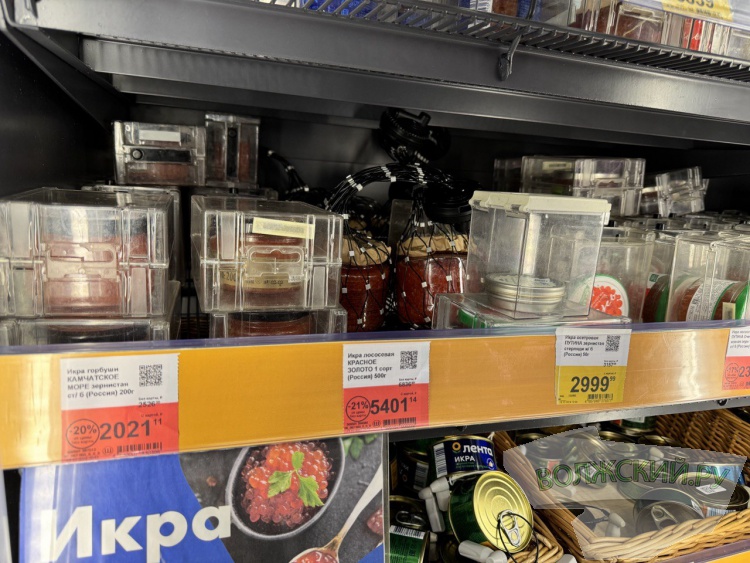 Бюджетная баночка красной икры 95 граммов здесь стоила 579,99 рубля. При этом можно было взять 240 граммов почти за 3,5 тысячи рублей или 75 граммов – всего за 500 рублей.
