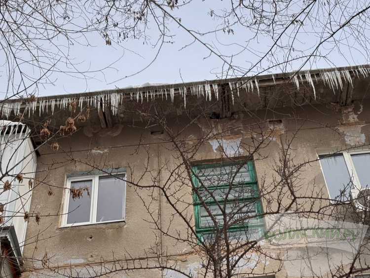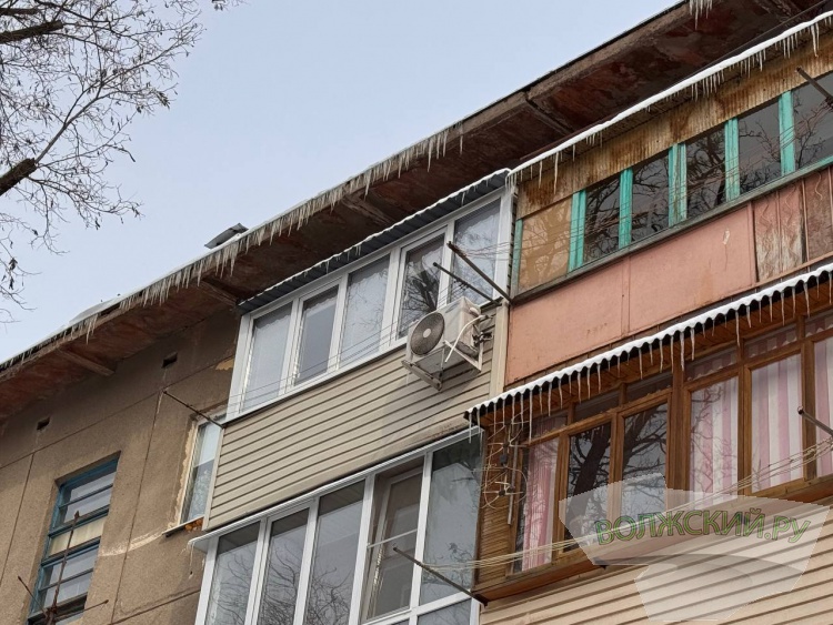 Погода в Волжском способствует накапливанию снега на кровле и появлению длинных и опасных сосулек на крышах.