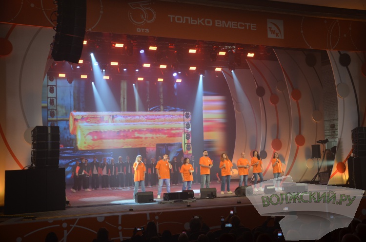 В перерывах между поздравлениями звучали песни в исполнении профессиональных коллективов с участием творческих работников ВТЗ Трогательно смотрелся номер с участием детей сотрудников завода.