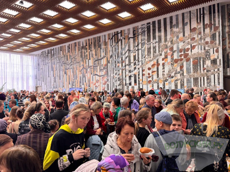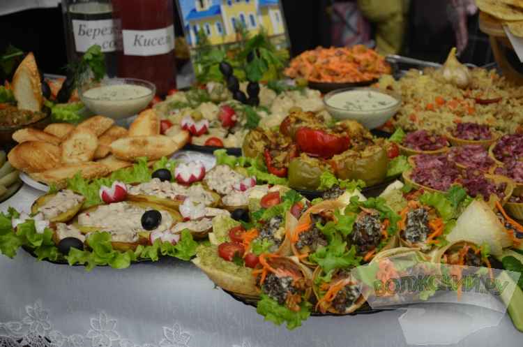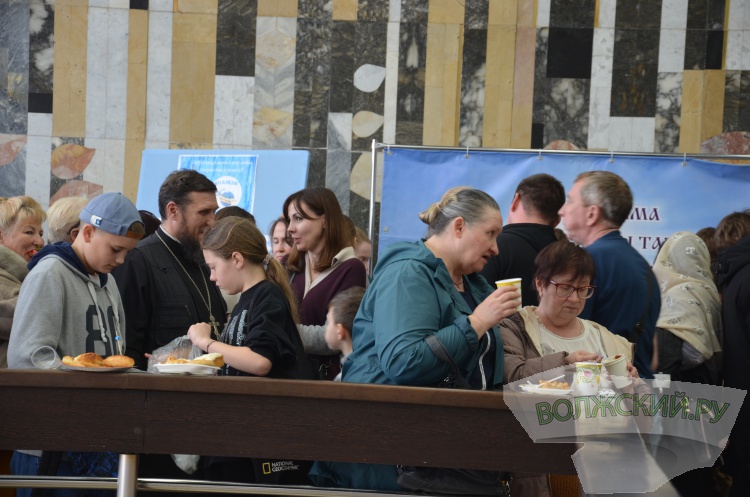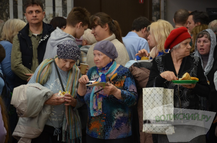 Когда почётные гости попробовали угощения, импровизированное ограждение сняли, и около сотни волжан смогли оценить необычные бутерброды, закуски, салаты, торты, супы, горячие блюда, десерты, напитки. Особо подготовленные приходили с пакетами и запасались впрок.