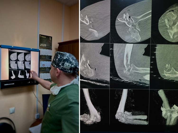 После заживления предстоит второй этап – операция по установке металлических фиксаторов на переломы костей плеча и предплечья. Сейчас пациент остаётся в больнице.