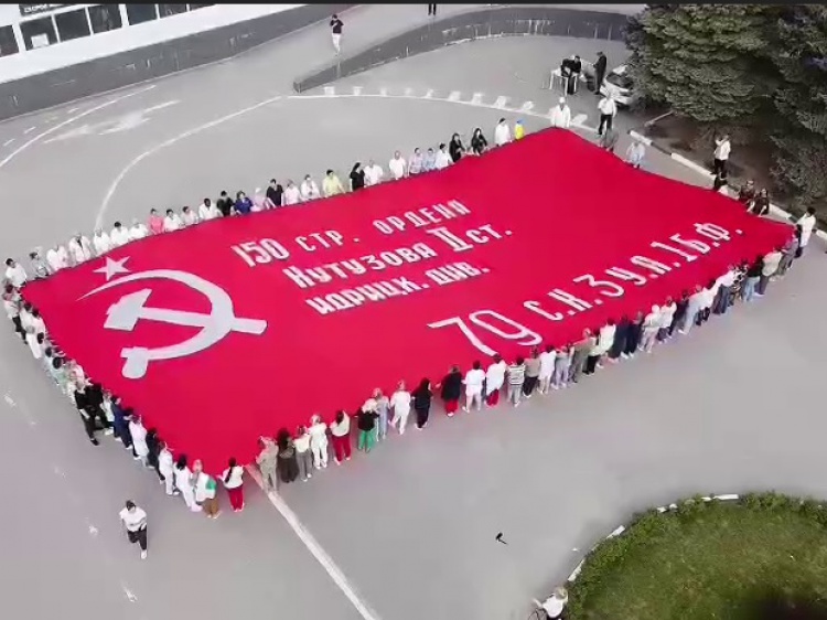 Как рассказали Волжский.ру в медицинском учреждении, медики развернули во дворе копию Знамени Победы в знак уважения к подвигам погибших бойцов. В мероприятии приняли участие также дети сотрудников больницы.