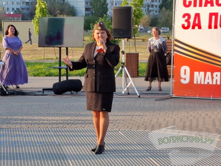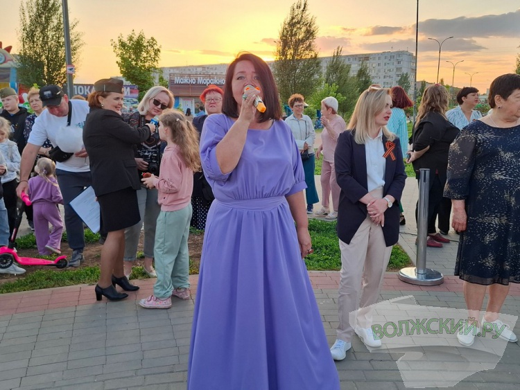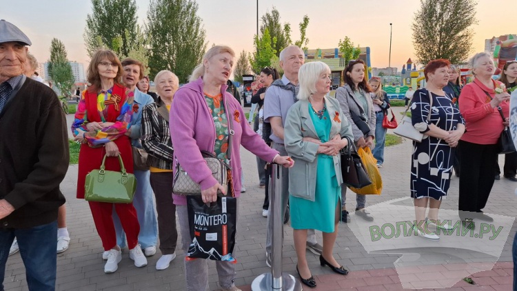 Еще одним подарком зрителям стало исполнение песен войны. Многие из них были написаны уже после войны, но ушли в народ и были приравнены к песням военных лет. На больших экранах пустили текст песен и все желающие могли подпевать под музыку. Для волжан прозвучали любимые с детства «Катюша», «Темная ночь», «В землянке», «Синий платочек» и другие.