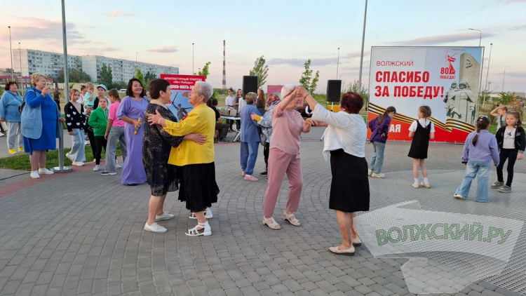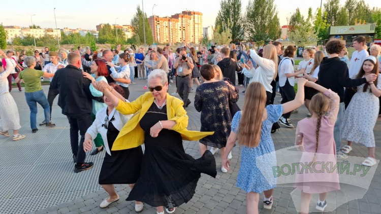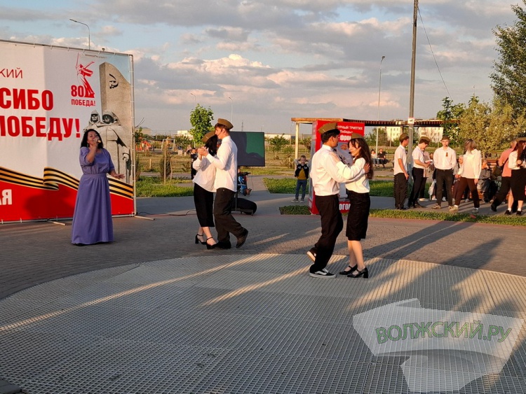 После вступительных речей самодеятельные творческие коллективы и молодежь закружились на импровизированной сценической площадке в ритме вальса под песни со старых патифонных пластинок. Особенно трогательным получилось выступление коллектива «Возраст не помеха». Ведущие рассказали зрителям историю вальсов. Именно этот танец был выбран не случайно. Во время Великой Отечественной войны музыка была единственным развлечением людей, которая помогла немного отвлечься от тягот войны. Она часто звучала в госпиталях. А после войны большую популярность приобрел вальс. В послевоенные годы было написано много вальсовых композиций. Волжане решили приобщиться к послевоенному досугу своих дедушек и бабушек, а пожилые люли вспоминали молодость.
