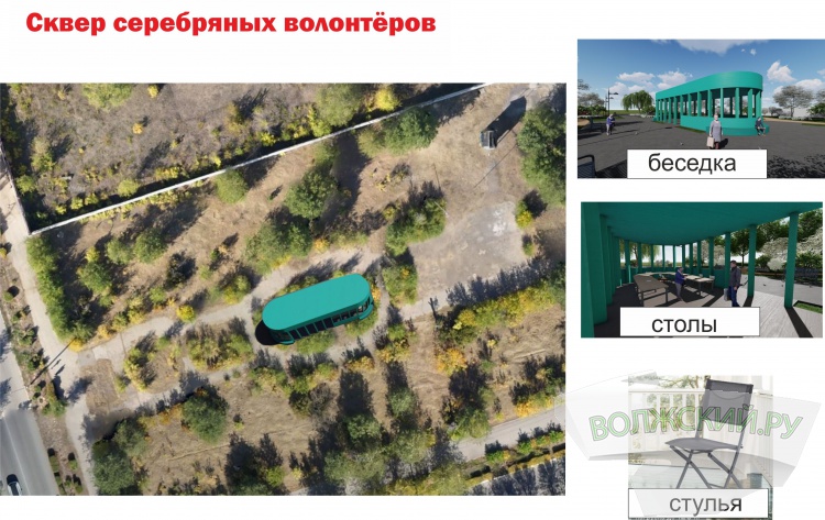 Как узнал Волжский.ру из документов на сайте мэрии, именно здесь по программе инициативного бюджетирования в 2026 году хотят создать сквер серебряных волонтёров. Здесь может появиться беседка с 10 столами и 30 стульями для чаепития, рукоделия, рисования, настольных игр.