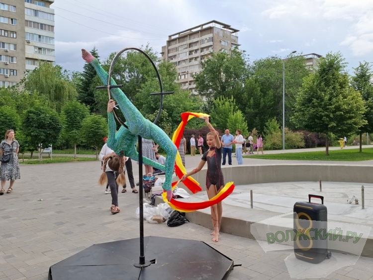 В парке «Волжский» для жителей был организована работа интерактивных площадок и мастер-классов. Вдоль центральной аллеи расположились площадки городских спортивных и танцевальных секций. Свои показательные выступления представили циркачи. Работали различные творческие мастер-классы. По аллеям гуляли сказочные персонажи – Кот Базилио, Лиса Алиса и другие.
