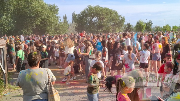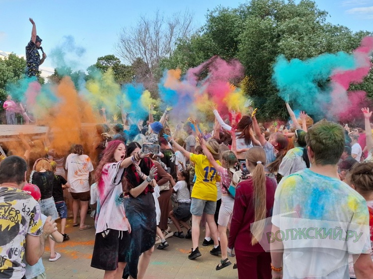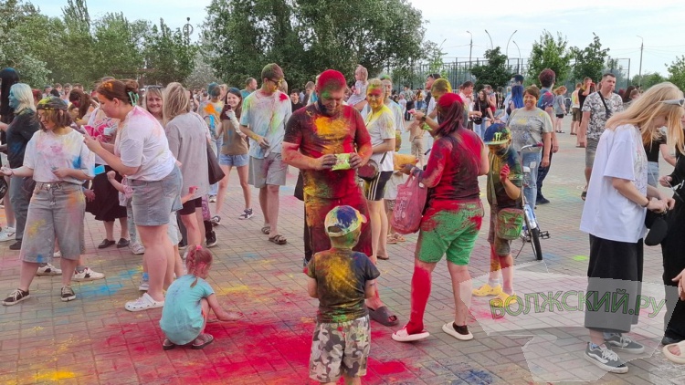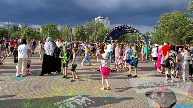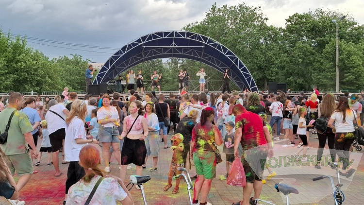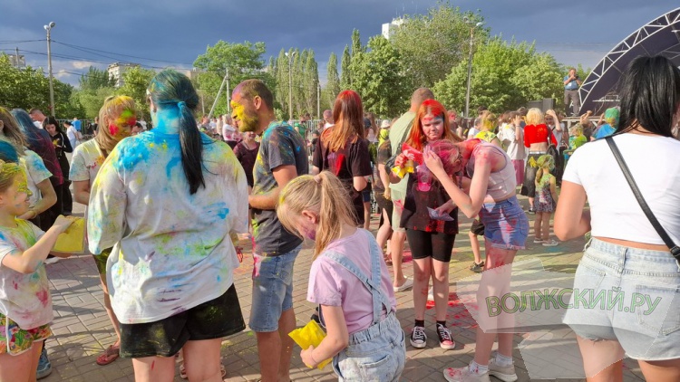 Главное шоу развернулось у главной сцены. Здесь под громкие выкрики MC прошел фестиваль красок Холи. В считанные минуты вся площадь и волжане на ней покрылись яркими пятнами. А поднявшийся ветер разносил разноцветную пыль на всю округу. Избежать «разноцветного настроения» не удалось никому.