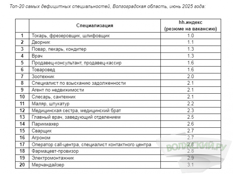 Как рассказали Волжский.ру в эксперты hh.ru, в первой пятёрке самых дефицитных остаются токари, дворники, повара/пекари/кондитеры, врачи и продавцы. Индекс конкуренции (количество резюме на вакансию) по ним остался прежним или упал. Например, у дворников в мае индекс был 1,6, а в июне – 1,1. При этом нормой считается от 4 до 8.