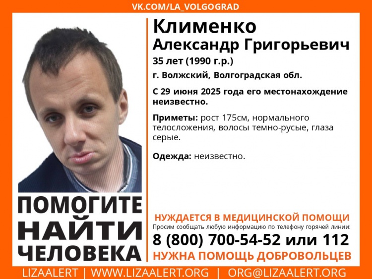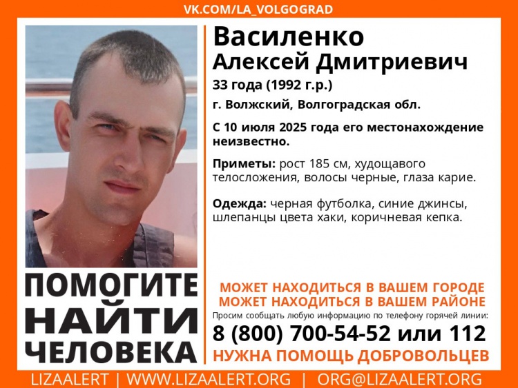 Как узнал Волжский.ру у активистов сообщества, накануне появилось объявление о розыске 33-летнего Алексея Василенко. Высокий худощавый кареглазый мужчина ушел из дома еще 10 июля и перестал выходить на связь. Он был одет в черную футболку, синие джинсы и коричневую кепку. Позже региональные СМИ сообщили о том, что мужчину нашли мертвым на берегу Ахтубы в поселке Рабочем. Однако поисковикам об этом пока ничего не известно.
