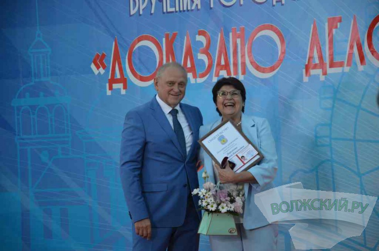 Он же вручил самую главную городскую награду – «Почетный гражданин города Волжского». Её присваивают за особые заслуги перед городом людям, которые внесли весомый вклад в его развитие, В этом году почётного звания удостоилась Татьяна Деркачева – кандидат юридических наук, доцент, руководитель кафедры юриспруденции и психологии Волжского филиала ВолГУ. Ранее она работала управделами мэрии Волжского. Татьяна Васильевна трудится в системе высшей школы города более 27 лет, общий стаж работы составляет 51 год.