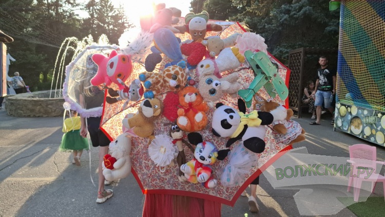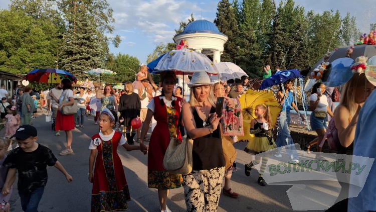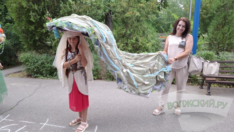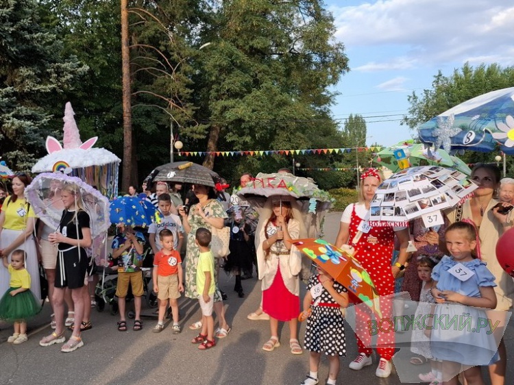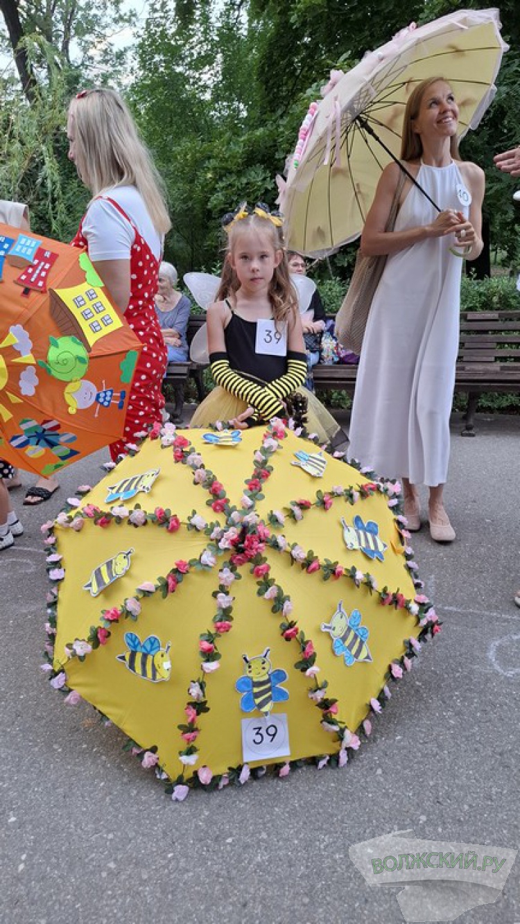 Участники выстроились на тенистой аллее у парапета летнего кинотеатра. Зонтики оценивало жюри в составе представителей администрации Волжского, депутатского корпуса и бизнеса. Также свои голоса за понравившиеся образы могли оставить и все посетители парка.