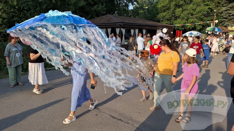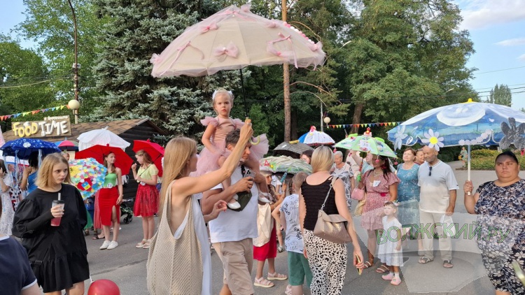 В городе впервые прошел красочный фестиваль зонтиков. Мероприятие собрало более 40 участников. Волжане креативили вместе со своими семьями. Они предстали перед гостями парка и членами жюри в необычных образах с зонтиками. Какие только фантазии не воплощали в жизнь творческие волжане. Здесь были и морские медузы с длинными щупальцами, и яркие помидорки с пчелками, и романтичные образы, и даже образы реки Ахтубы и культового персонажа сериала Уэнсдей.