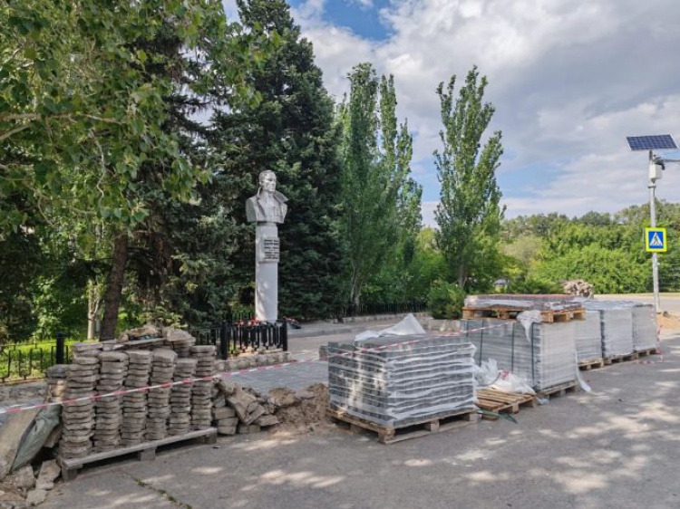 В Волжском ведутся работы по благоустройству территории у памятника Герою Советского Союза, генерал-лейтенанту инженерных войск Дмитрию Карбышеву.