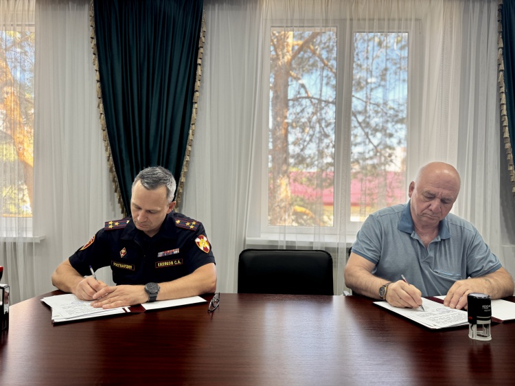 Начальник регионального управления Росгвардии полковник полиции Сергей Киляков и директор кадетской школы им. Героя России С.А. Солнечникова города Волжского Владимир Журба подписали соглашение о сотрудничестве.