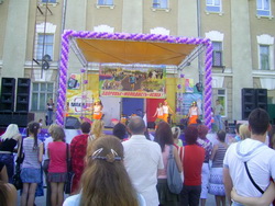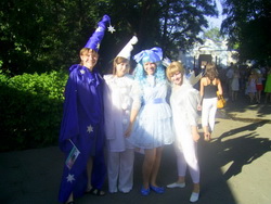 Я пришел в парк, когда он еще не был готов к торжеству Дня молодежи. Однако дух предстоящего праздника уже явно витал в нем. Воздвигались эстрады, растягивались рекламные баннеры, проводили репетиции многочисленные творческие группы и коллективы, а в стороне строился настоящий город мастеров, обустраивали который девчонки и мальчишки в старинных ремесленных одеждах. И совсем неслучайно, что когда я увидел девочку с голубыми волосами, а рядом ее верных друзей - Артемона, Пьеро и Арлекина - меня посетило чувство, будто я нахожусь в сказочной стране…