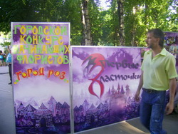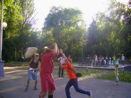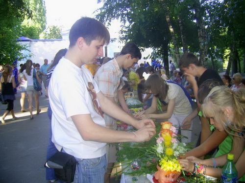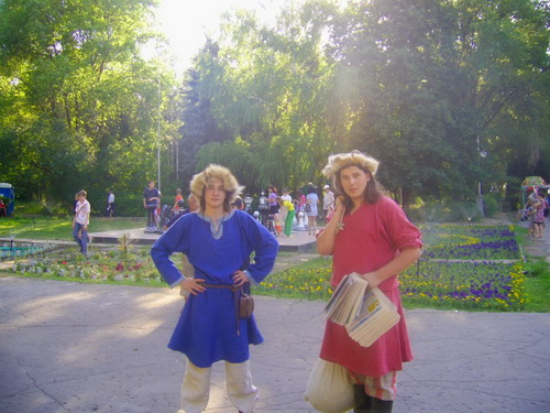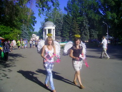 Предчувствие не обмануло. Когда начался праздник, я наткнулся на двух крылатых существ, которые аки ангелы дефилировали по центральной аллее парка. Чуть позже я увидел их у входа в ротонду, где они преспокойно выдавали брачные сертификаты всем желающим. Правда, для этого «брачующимся» надо было пройти обряд «бракосочетания» и правильно ответить на каверзные вопросы заведующего «Загсом».