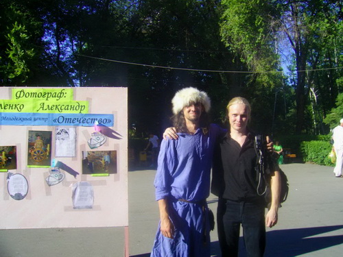 Вот так уживаются прошлое и настоящее. Даже в обнимку стоят. Несмотря на то, что один в прохорях средневековых протертых, а другой в кроссовках…
