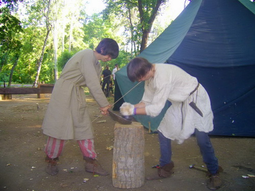 А тем временем со стороны города мастеров шум послышался. Я туда быстрей. А там! Кузнецы железо куют, девки полотна ткут, мастера кольчуги железные собирают. И все со знанием дела, сноровисто, да по уму… Не стал я им производственный процесс срывать - дальше пошел…