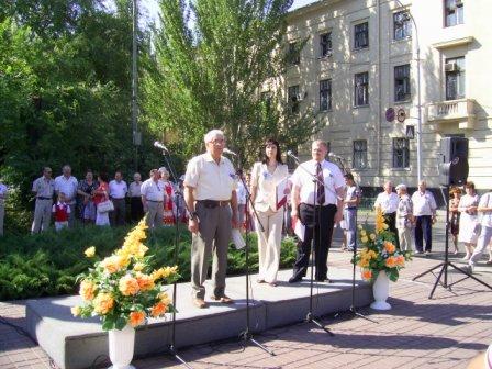 Не сказать о том, что День города – событие, выходящее за рамки формата территориального образования – значит не сказать ничего. Об этом упомянул даже губернатор области Н.К. Максюта в своем выступлении перед горожанами. Потом он передал Волжскому привет от Ижевска, откуда только что прибыл и, отметив достижения волжан, наказал в преддверии предстоящих выборов коней на переправе не менять. Главным аргументом наказа стал фактор того, что старый кони борозды не портят… Следом выступили мэр города И.Н. Воронин и председатель городской думы Т.П. Бухтина поздравившие первостроителей с праздником и поблагодарившие их за самоотверженный и созидательный труд. После этой процедуры, на них была возложена торжественная миссия возложения венков к пьедесталу основателя города, с которой они легко и непринужденно справились…