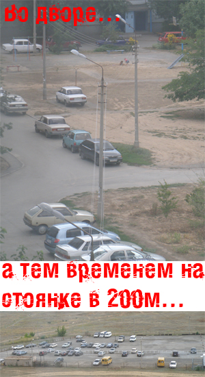 Инспектор жалуется на Запад: если там говорят: «Не ставить», - никто и не подумает нарушить. А у нас народ вольный, ничего не боится. Гляньте ночью на дорогу по Оломоуц-кой у дома номер восемь: все обочины забиты. Адресов своеволия - море. Конечно, есть карманы для отстоя, но они тоже заняты. На стоянки экономия не пускает - раз, ну и отдаленность - два. На 23-й, 25-й, 26-й и 30-й микрорайоны, где живет треть Волжского, лишь одна коновязь для машин, на улице Дружбы. И то там строят спорткомплекс.