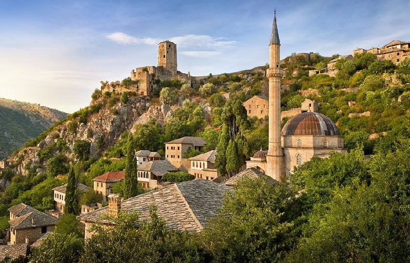Рядом с Черногорией располагается Босния и Герцеговина. Для посещения этой страны не бывает неблагоприятных сезонов. Здесь можно кататься на лыжах, поправлять свое здоровье на термальных курортах в Илидже. Хвойные леса, невысокие горы до 500 метров и реки – это то, зачем приезжают отдыхающие. Климат в этой стране похож на российский с приятными особенностями: лето солнечное и нежаркое. Пляжный отдых представлен единственным курортом Неум с 10-километровой береговой линией. Языковой барьер в стране отсутствует – много русскоговорящего населения. Национальная боснийская кухня представлена блюдами гювеч (боснийский плов), пида (слоеные пироги с мясом и сыром), гайдук (мясо жареное на гриле), а также жапрак (местные голубцы).
