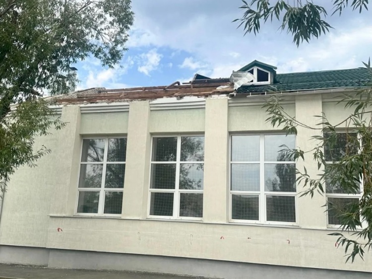В результате ЧП была разрушена часть кровли над пристройкой со спортзалом и пищеблоком, а также часть перекрытий между чердаком и помещением кухни